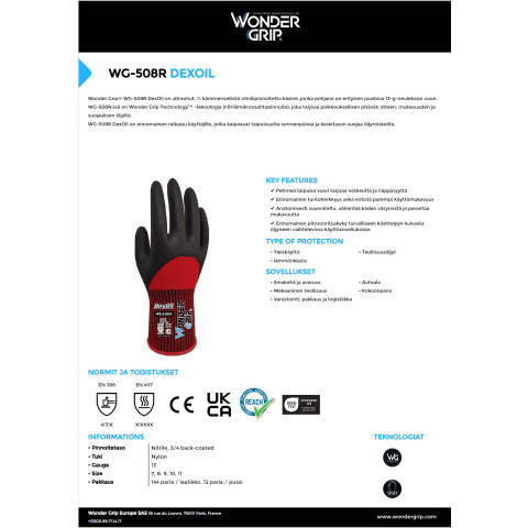- Wonder Grip 508R DexOil suojakäsine - 508